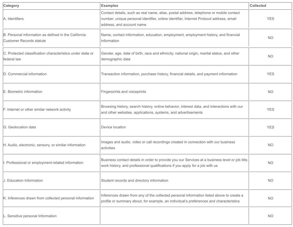Do we process any sensitive personal information? Some of the information may be considered
