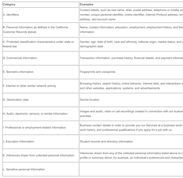 Right to access the categories of personal data being processed (as permitted by applicable